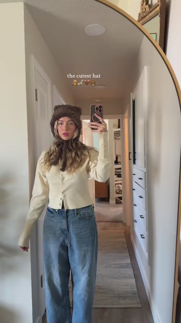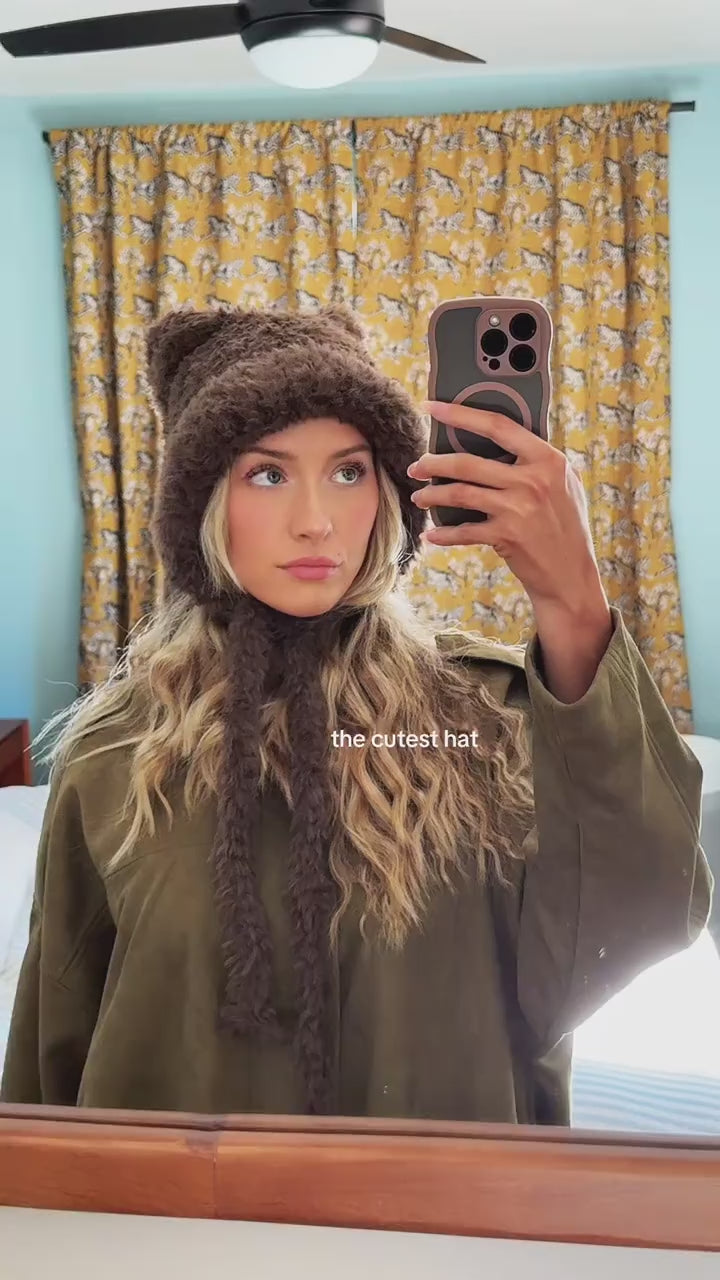 Wraps your head, ears and neck, with cute bear ears and long ties you can style or wrap for extra warmth. Perfect for cold walks, Christmas markets, ice skating dates and cozy selfies.